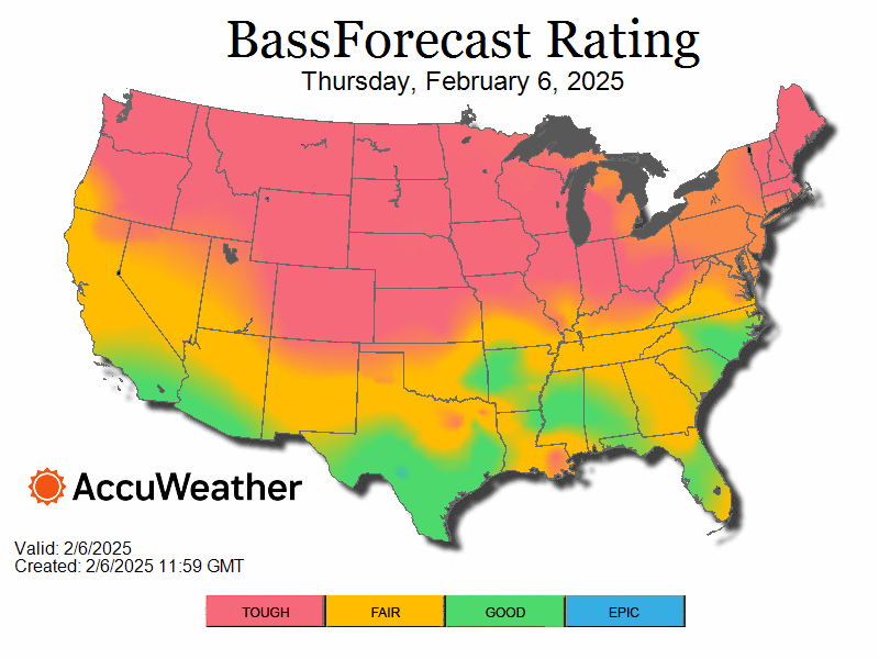 Bass Fishing 10 Day Outlook - February 06, 2025