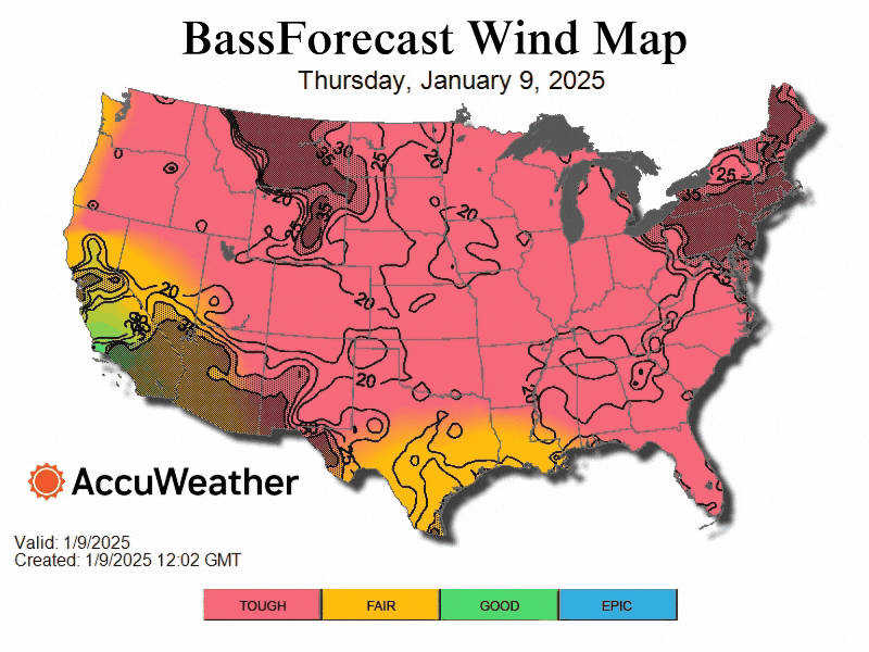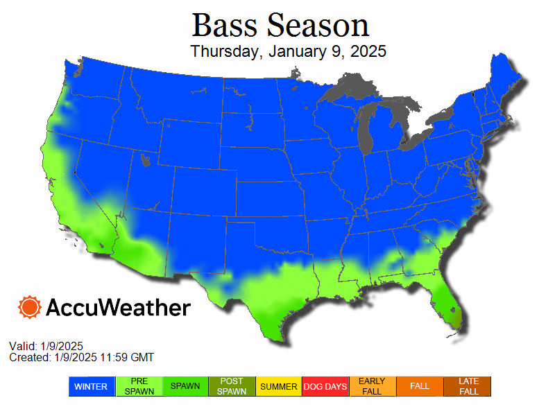 Bass Fishing 10 Day Outlook - January 09, 2025