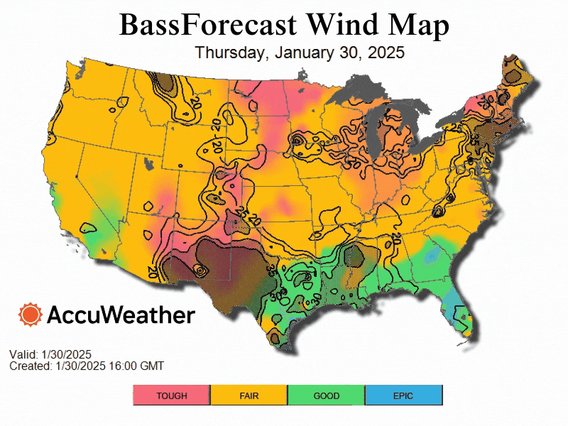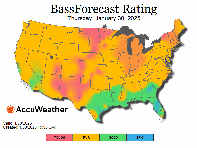 Bass Fishing 10 Day Outlook - January 30, 2025